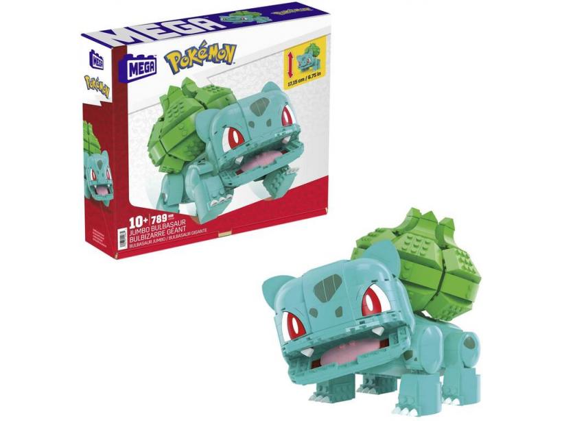 ¡No lo pienses más y llévate a casa este nuevo y sorprendente Pokémon Mega Figura Bulbasaur Jumbo de Mattel! ¡Un Pokémon de Tipo Planta listo para la acción más genial!Consigue este nuevo pack que incluye casi ochocientas piezas con las que crear al adorable y poderoso Bulbasaur en tamaño jumbo. Una oportunidad de lujo de tener en casa a uno de los Pokémon iniciales de la Primera Generación, lleno de detalles y con la oportunidad de vivir una aventura creativa sin igual. ¡Con partes articuladas para darle mayor realismo y diversión a tu gran figura!¡Máxima diversión y creatividad de la mano de tus Pokémon preferidos! ¡Descubre las mejores oportunidades para hacerte con todos los Pokémon construibles gracias a Mega de Mattel!Edad recomendada: 10 años o más.Colección: Mega.Linea: Pokémon.Incluye: 1 figura construible de Bulbasaur de tamaño jumbo con partes articuladas para modificar tu postura.Número total de piezas: 789 piezas.Medidas aproximadas de la figura construida: 17,15 cm de alto.