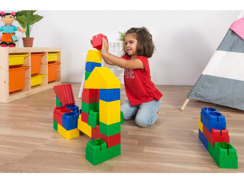Deja que tus pequeños se conviertan en auténticos arquitectos y constructores gracias a este Super Kim Bloc.Realizadas en plástico blando y flexible de distintas formas como triángulos, cuadrados o rectángulos y de color rojo,verde, amarillo y azul. 40 piezas con la que nuestros pequeños se lo pasarán en grande uniendo y montando las estructuras que se les ocurra, casa, torres, aviones, lo que quieran. Un juego que afianza el desarrollo y que le ayuda a diferenciar y aprender formas y colores. Una manera practica para que se entretengan y se lo pasen bien, mientras crean sus obras solos o en compañía de sus amigos, en casa, en el parque o en el jardín.Las piezas de gran tamaño son muy fáciles de encajar, además de tener un peso muy ligero. Un juego con el que los pequeños demostrarán sus dotes en la construcción y con el que plasmarán su creatividad además de asegurarles la diversión y el entretenimiento absoluto.Edad recomendada: +18 meses.Incluye: 40 piezas.