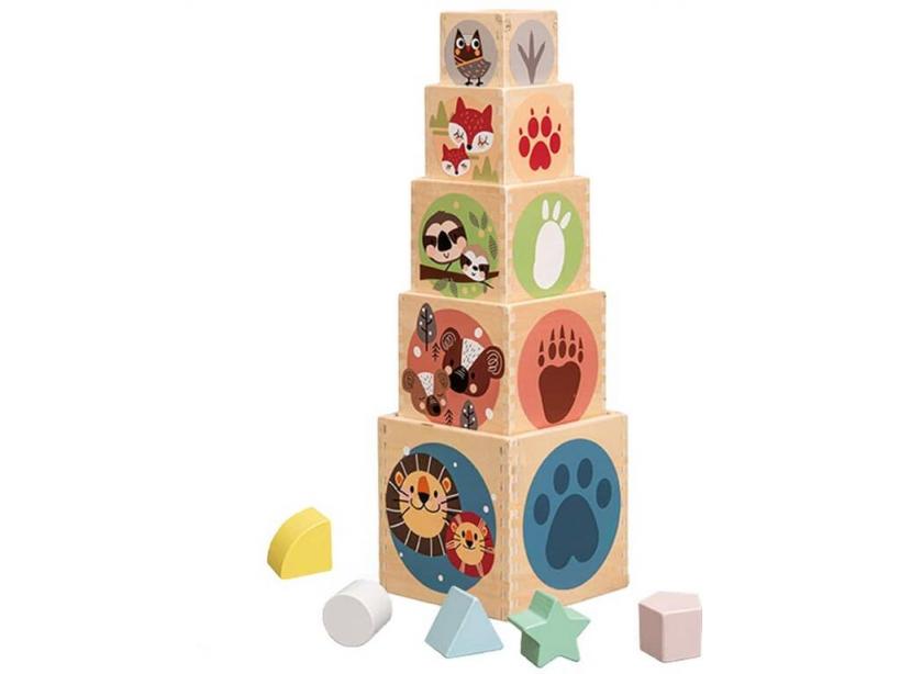 ¡Encaja, apila y aprende bloque a bloque! ¡Junto a los peques y el nuevo Bloques Apilables de Madera con 10 Piezas!Hazte con este genial juguete de madera, un set de bloques con diseños de animalitos, sus huellas e incluso hueco para piezas de madera especiales, ideal para que los más peques puedan encajarlos, apilarlos y construir espacios nuevos de juego sin igual. Ideal para ayudarles a ganar confianza en el juego, aumentar su creatividad y capacidad de concentración.Edad recomendada: 24 meses o más.Colección: NaturPlay.Incluye: 5 cubos con tamaños y diseños variados y 5 piezas de madera con formas y colores variados.Número total de piezas: 10 piezas.Medidas aproximadas del cubo de mayor tamaño: 12,2 cm de alto, 12,2 cm de ancho y 12,2 cm de fondo.Medidas aproximadas del cubo de menor tamaño: 5,7 cm de alto, 5,7 cm de ancho y 5,7 cm de fondo.Medidas aproximadas de la pieza con forma de estrella: 3,8 cm de alto, 3,8 cm de ancho y 2,8 cm de fondo.