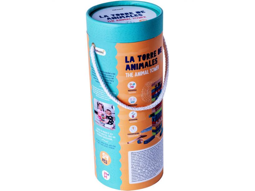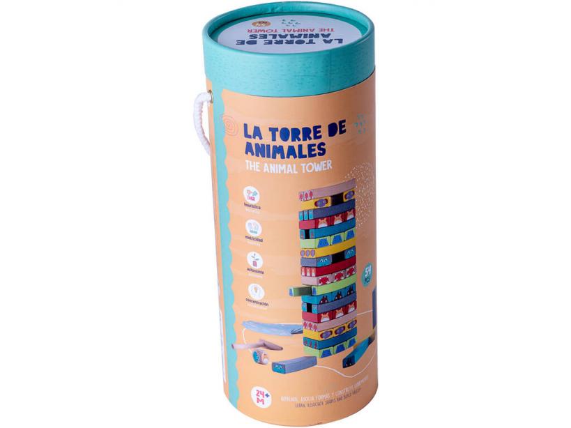 ¡Disfruta junto a los peques del hogar de este nuevo divertido juego La Torre de Animales Madera!El juego consiste en tirar el dado, y quitar poco a poco las piezas inspiradas en animales de la torre con un pequeño martillo de madera. El ganador será el que logre mantener la torre en pie quitando el mayor número de piezas.La torre está elaborada con materiales de madera de alta calidad, suaves al tacto.Importante: Las frases de las cartas están en ingles.Este juego es perfecto para mejorar las habilidades de equilibrio de los niños y ejercitar su capacidad de razonar ante el reto de no derrumbar la torre.Edad recomendada para su disfrute: 24 meses o más.Incluye: 1 dado de madera con caras de animales, 12 animales con frases y 54 piezas de madera de colores variados con estampados de animales (azul, gris, verde, rojo, amarillo, marrón).Medidas aproximadas de la torre completa: 25 cm de alto, 7 cm de ancho y 7 cm de fondo.Medidas aproximadas de cada pieza: 1,5 cm de alto, 7 cm de ancho y 2 cm de fondo.Medidas aproximadas del dado: 25,5 cm de alto, 2,5 cm de ancho y 2,5 cm de fondo.Medidas aproximadas del martillo: 13,5 cm de alto, 4 cm de ancho y 1,5 cm de fondo.