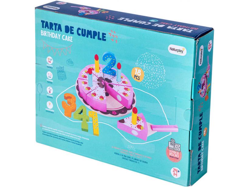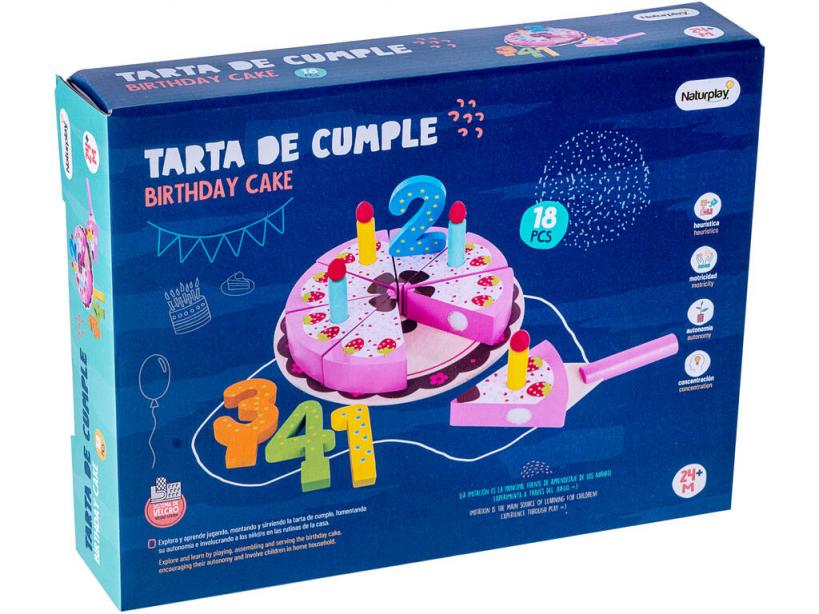 ¡Celebra uno de los días más importantes del año como se merece! ¡Gracias a esta genial Tarta de Cumple de Madera de NaturPlay!Consigue esta deliciosa tarta de fresa, nata y chocolate, justo lo que buscas para preparar el cumpleaños de los más peques de la casa. Una divertida y colorida tarta de madera con adhesivos en las porciones de tarta para unir y separar tantas veces como quieras. ¡Coloca las velas y el número de los años que cumple el peque y disfruta de un momento inolvidable tantas veces como quieras! ¡El juguete perfecto para ensayar el momento más especial del cumpleaños!Gracias a este completo juguete los peques podrán desarrollar habilidades de lo más útiles para el día a día como la concentración, el juego de imitación, mejorar la expresión verbal y la motricidad. ¡Con piezas de tamaños y colores variados, pero siempre ligeros y resistentes!Edad recomendada: 2 años o más.Colección: NaturPlay.Número total de piezas: 18 piezas.Incluye: 1 plato de madera, 1 tarta de madera de fresa con 8 trozos y piezas adhesivas para unir los trozos, 4 velas de colores, 4 números de colores para la tarta (1, 2, 3 y 4) y 1 espátula para porciones de tarta.Medidas aproximadas de la tarta: 3 cm de alto, 15 cm de ancho y 15 cm de fondo.Medidas aproximadas de cada vela: 6 cm de largo y 1 cm de diámetro.Peso aproximado de la tarta con plato: 400 gramos.