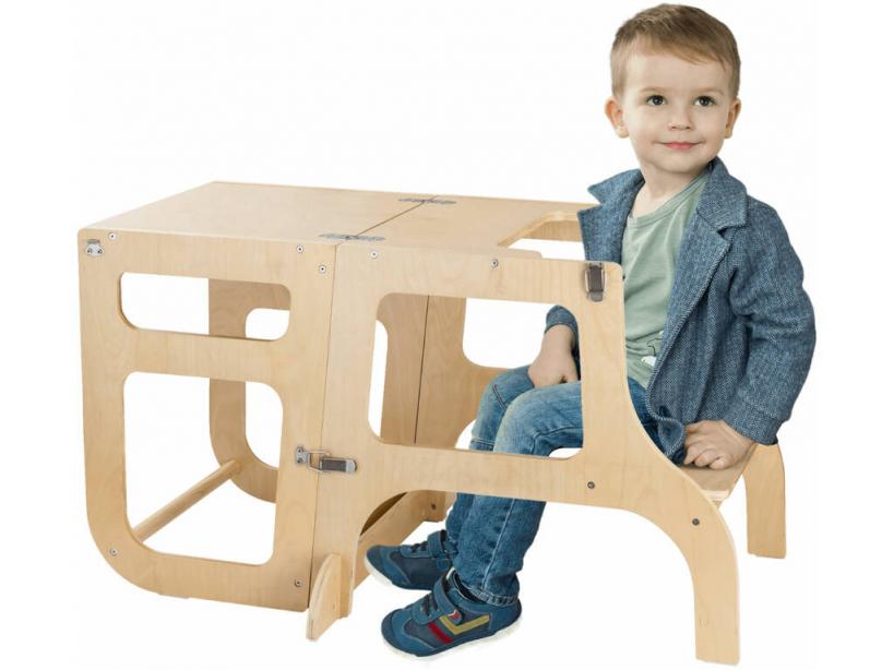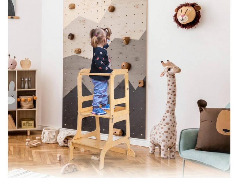 ¡Deja que los peques ganen confianza y autonomía en un espacio de lo más práctico e inspirador! ¡Hazte con esta genial Torre Aprendizaje Multifunción de Madera de NaturPlay!Ya tienes a tu disposición la torre multiusos más buscada para el crecimiento, desarrollo y aprendizaje de los niños. Un nuevo espacio convertible, donde los peques pasarán a ser los protagonistas de su propio aprendizaje, un modo de educación y aprendizaje activo, que les da mucha más libertad de elección y potencia su personalidad.El artículo en modo torre sirve de taburete para participar en las tareas del hogar, pero también se puede disfrutar a modo de silla, escenario para marionetas, expositor de juguetes y todo lo que los peques puedan imaginar. Mientras que el artículo en modo pupitre permite a los peques sacar su lado más creativo sobre la mesa, bien sea directamente con objetos o incluso dibujando en un papel. ¡Esto solo son ejemplos! ¡La realidad es que este magnífico espacio tiene tantas posibilidades como ideas pueden tener los peques que lo van a disfrutar!Este genial artículo se ha fabricado con madera ligera y muy resistente, con la estabilidad que buscas para disfrutarla con la seguridad que se busca en artículos de este estilo. Esta torre multifunción tiene un diseño especial inspirado en pedagogías alternativas centradas en la infancia como Montessori y Waldorf. ¡Ideal para ayudar a los peques a desarrollar un sin fin de habilidades y capacidades de lo más útiles para el día a día!Importante: Adultos responsables han de garantizar que se juega un entorno seguro y habilitado para el disfrute sin forzar a los niños a realizar actividades concretas sobre el artículo.Nota: Es necesario el montate por un adulto.Edad recomendada: 3 años o más.Peso máximo recomendado para su uso: 50 kg.Colección: NaturPlay.Incluye: 1 torre de aprendizaje multifunción de madera convertible en pupitre de madera y mucho más con piezas especiales para fijar el artículo en la posición deseada. Medidas aproximadas del artículo en modo torre: 91 cm de alto (20 cm hasta el escalón y 46 cm hasta la plataforma), 41 cm de ancho y 51 cm de fondo.Medidas aproximadas de la plataforma: 30 cm de largo y 39 cm de ancho.Medidas aproximadas del artículo en modo pupitre: 45 cm de alto (20 cm de hasta el asiento y 46 cm hasta la mesa), 81 cm de ancho y 41 cm de fondo.Peso aproximado de la torre de aprendizaje: 5,36 kg.