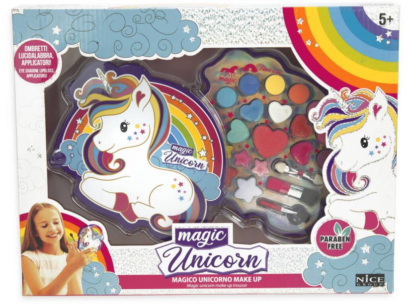 ¡Con el Unicornio Set De Maquillaje Nice 2802 tendrás todo lo necesario para aumentar aún más la belleza que ya tienes!.Con este fabuloso estuche de maquillaje podrás conocer una gran variedad de polvos mágicos con los que estar listo para cualquier evento. Utiliza todos los utensilios que dispone para realizar fabulosas combinaciones de colores. Tus labios quedarán perfectos y el brillo de tus ojos será radiante. ¡Pero eso no es todo, mírate en el espejo que tiene mientras te lo haces!.Si te apasiona el mundo de los unicornios, debes conocer la gran variedad de productos que disponemos en nuestra web. ¡Adéntrate en el mundo mágico!.Edad recomendada: + de 5 años.Incluye: Una caja de almacenaje ilustrada y un completo estuche de maquillaje.Medidas aproximadas de la caja de almacenaje: 25 cm de alto x 35 cm de ancho x 5 cm de fondo.Medidas aproximadas del Estuche: 3 cm de alto x 16 cm de ancho x 16 cm de fondo.