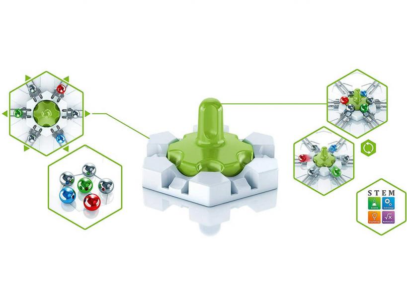¡Giros de diversión, emoción y adrenalina! ¡Junto a este completo set Gravitrax Extensión Balls & Spinner de Ravensburger!Disfruta de tu circuito Gravitrax de siempre, ahora con un giro nuevo, gracias a este práctico set de extensión. Instálalo en algún lugar estratégico del circuito y descubre todas sus opciones de juego.Importante: Este pack de extensión solo se puede utilizar si dispones del Starter Set de Gravitrax que se vende por separado.Nota: Accesorios y canicas extra no incluidas en el pack, se venden por separado.Edad recomendada: + 8 años.Número de jugadores: 1 o más.Incluye: 1 caja de almacenaje ilustrada, 1 set extensión Balls & Spinner con 1 base giratoria, 6 canicas (1 verde, 1 roja, 1 azul y 3 plateadas) e instrucciones en varios idiomas (castellano, alemán, francés, italiano, inglés y neerlandés).Medidas aproximadas de la caja de almacenaje: 19 cm de alto, 19 cm de ancho y 5 cm de fondo.