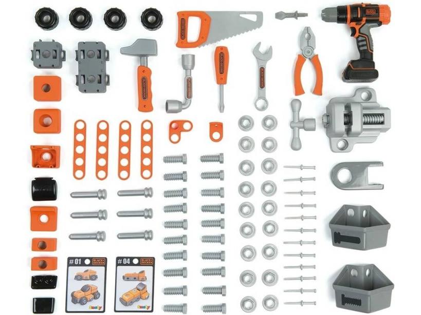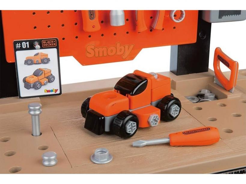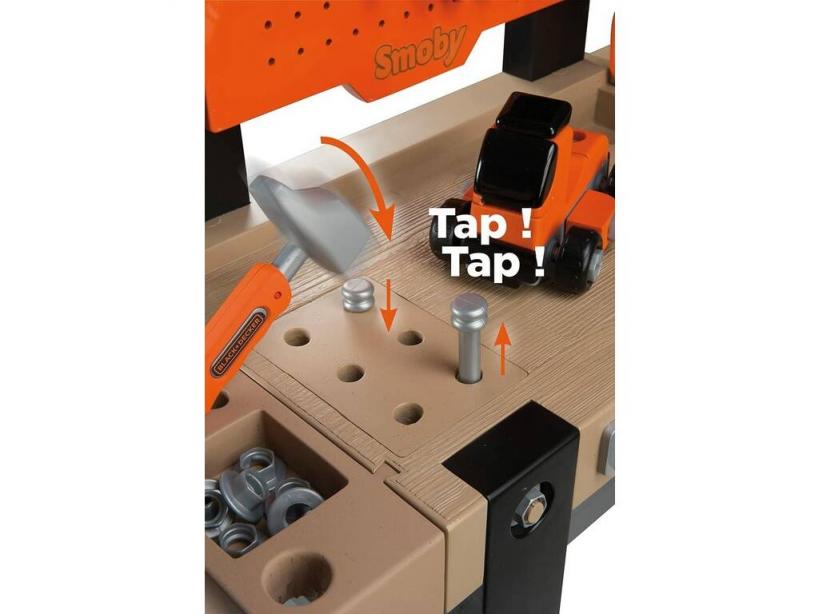 Grandes momentos de entretenimiento te esperand en el Bricolo Center Black and Decker Simba 360727. ¡Vas a terminar siendo todo un manitas!Encuentra el lugar perfecto para montar y colocar este fabuloso y productivo centro de bricolaje. En el tendrás la oportunidad de manejar una gran variedad de herramientas de trabajo para comenzar a familiarizarte en lo que tanto te gusta. Que tienes por ahí para reparar Y para construir Clava tornillos, utilizar el gato correctamente y elabora divertidos vehículos.Edad recomendada: + de 3 años.Incluye: Una caja de almacenaje ilustrada, un banco de trabajo de bricolaje, una sierra, un martillo, una llave inglesa, un destornillador, unos alicates, una llave de tubo, un gato, 20 tornillos, 18 tuercas, un juego de construcción que se puede transformar en vehículos, una regla mecánica, un taladro mecánico e instrucciones de uso y montaje.Medidas aproximadas de la caja de almacenaje: 76 cm de alto x 60 cm de ancho x 16 cm de fondo.Medidas aproximadas del centro de bricolaje: 103 cm de alto x 79 cm de ancho x 39 cm de fondo.¡Fabricado en Francia!