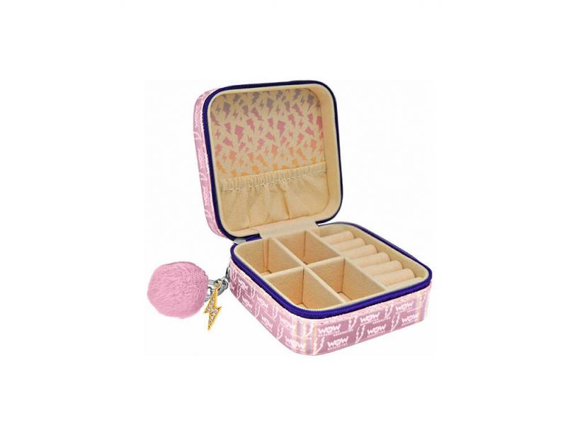 ¡Llévate tus joyas preferidas a cualquier parte! Gracias a este Joyero De Viaje Wow Generation de Kids Licensing WOW00010 .Un joyero perfecto para que los peques puedan organizar y llevar sus joyas de viaje. Cuenta con varios apartados para guardar todos los accesorios: cuatro compartimentos para guardar pulseras y collares, un bolsillito con goma elástica y otro apartado para los anillos.El joyero tiene un diseño de las chicas de la generación Wow con color rosado metálico y con cierre con cremallera. Cuenta con un charm brillante en forma de rayo y un llavero con pómpon morado.Encuentra en nuestra página web muchos más accesorios divertidos como los cascos, mochilas y gorras.Edad recomendada para su uso: 3 años o más.Incluye: un joyero de viaje con diseño de las chicas de la generación Wow de color rosa metálico, cierre morado, un charm de rayo de color dorado y un llavero con pompón.Medidas aproximadas del joyero: 10 cm de alto x 10 cm de ancho x 5 cm de fondo.Medidas aproximadas del llavero con pompón: 10 cm de alto x 3 cm de ancho.