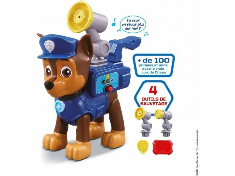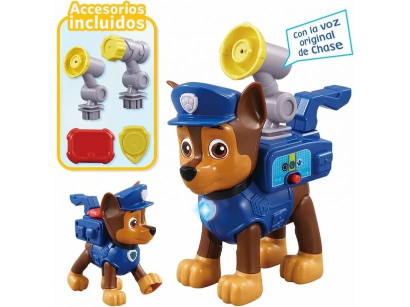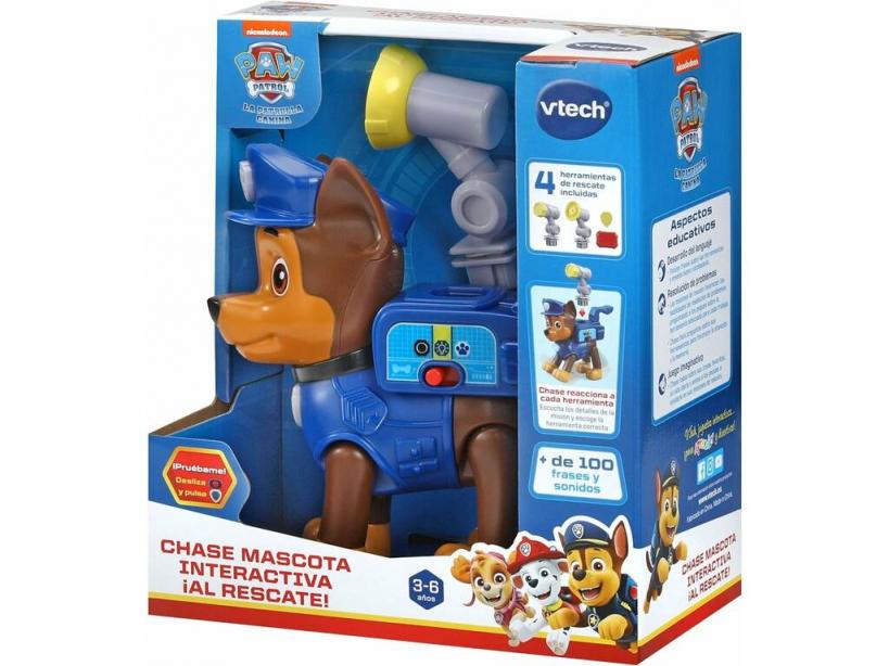 ¡Hora de aprender y jugar con Chase! ¡Prepárate para disfrutar junto a los peques y el nuevo Patrulla Canina Chase Mascota Interactiva ¡Al Rescate! de Vtech!Consigue este nuevo juguete educativo e interactivo, con el que disfrutar de horas de juegos y aventuras al más puro estilo de Chase y sus amigos. Coloca la herramienta que prefieras para Chase y descubre nuevas frases, prepárate para jugar al modo desafío o al modo aprendizaje, todos son divertidos y educativo.Importante: Frases en castellano.Edad recomendada: De 3 a 6 años.Colección: Paw Patrol.Incluye: 1 muñeco interactivo de Chase con más de 100 frases y sonidos de acción, 2 modos de juego (desafío y aprendizaje), colgante luminoso y más detalles, 4 herramientas de rescate para el muñeco (megáfono, lanzador de red, comunicador y brújula), diseño resistente y sistema de desconexión automática.Medidas aproximadas del muñeco: 20 cm de alto, 8 cm de ancho y 18 cm de largo.Funciona con 2 pilas «AAA» (incluidas sólo para demostración)Puede encontrar las pilas y baterías