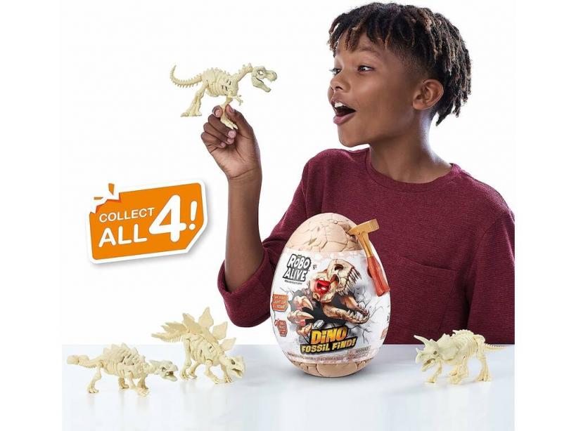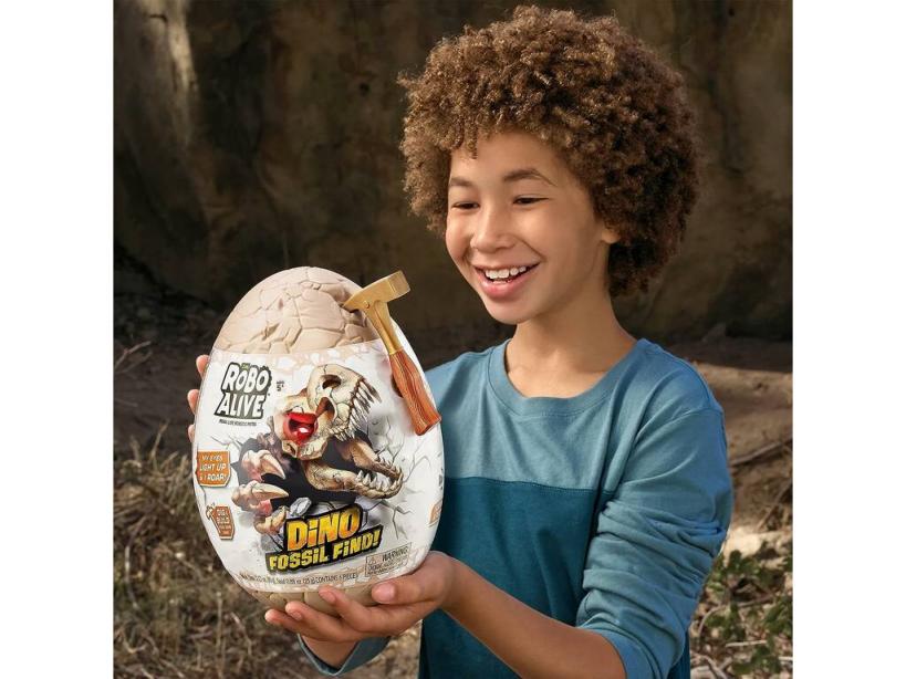 ¡Abre, encuentra y crea! ¡Prepárate para una aventura de otra era con este genial Robo Alive Dino Fossil Huevo Sorpresa de Zuru!Consigue este divertido huevo y descubre todas las sorpresas que guarda, descubre qué dinosaurio has de formar, hay 4 diferentes para coleccionar. Une los huesos y crea un ser alucinante con luz y sonidos de acción. ¡Disfruta con el resto de sorpresas que guarda este nuevo huevo de dinosaurio tan genial!Edad recomendada: 5 años o más.Colección: Robo Alive de Zuru.Incluye: 1 huevo de dinosaurio sorpresa con 1 fósil de dinosaurio sorpresa, 1 slime, 1 foam, 1 fossil, 1 herramienta pico e instrucciones.Medidas aproximadas del huevo sorpresa: 24 cm de alto, 16 cm de ancho y 12 cm de fondo.Funciona con 3 pilas «LR44» (incluidas sólo para demostración)Puede encontrar las pilas y baterías